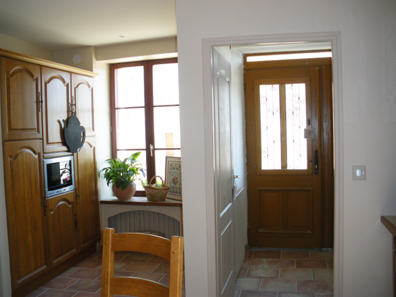 - Ouverture des volumes, suppression des cloisons entre ancien bureau et cuisine.