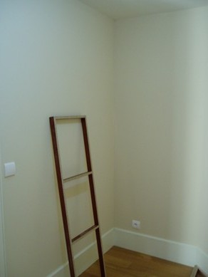 Dimension 2M90 X 3M hauteur sous plafond 3M40 nous avons abaissé le plafond à 3m pour rééquilibrer les volumes et utiliser ce faux plafond pour fixer des spots réglables en hauteur et orientables. Bénéficient d'une grande hauteur sous plafond (3 M) nous avons opté pour des meubles hauts 0,92M, nous gagnions ainsi sur les rangements et l'aspect visuel de la cuisine. Un stratifié blanc brillant apporte à la cuisine de la luminosité. La bande de peinture grise autour de la pièce rappel le plan de travail "gris souris". Au sol un parquet stratifié spécial cuisine fait écho à la table pliante, celle-ci est pourvue de 6 tiroirs. |